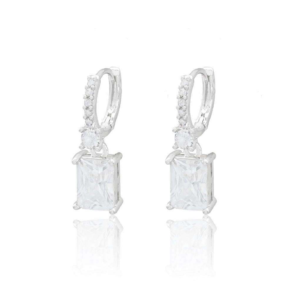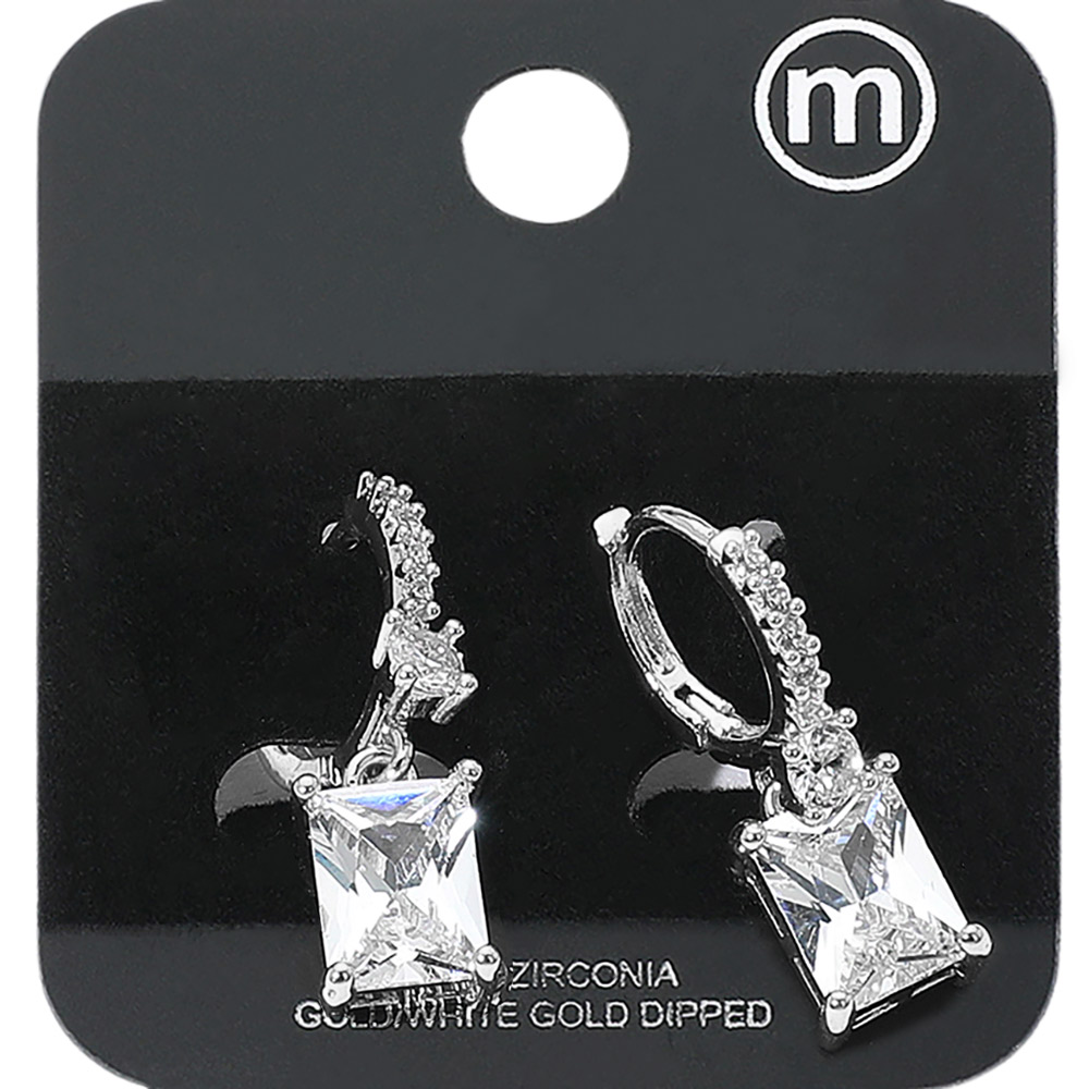 Gold Dipped Rectangle CZ Stone Cluster Dangle Hoop Evening Earrings