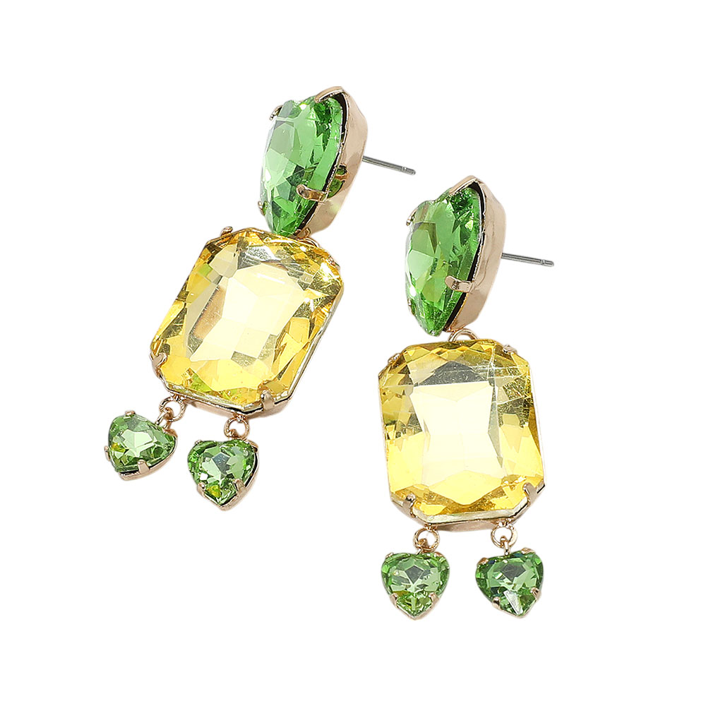 Heart Emerald Cut Stone Link Dangle Evening Earrings
