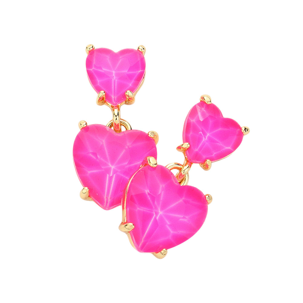Details • Size : 0.6" X 1.1" • Post Back • Elegant double heart drop earrings featuring dazzling faceted stones that shine beautifully. A romantic and chic accessory perfect for date nights, special occasions, or gifting someone you love. • Lead and Nickel Compliant
