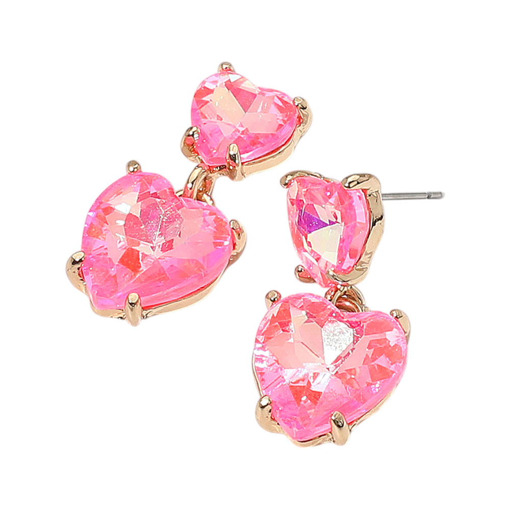 Details • Size : 0.6" X 1.1" • Post Back • Elegant double heart drop earrings featuring dazzling faceted stones that shine beautifully. A romantic and chic accessory perfect for date nights, special occasions, or gifting someone you love. • Lead and Nickel Compliant