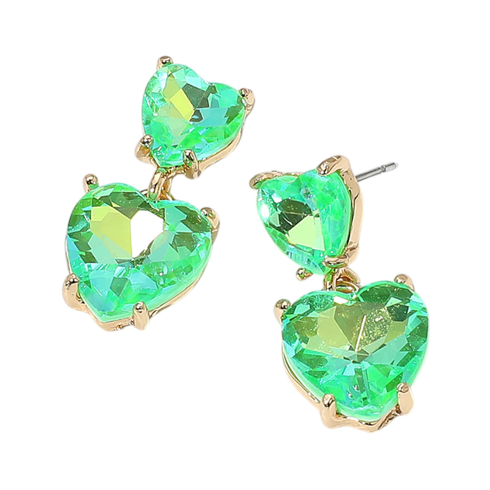 • Elegant double heart drop earrings featuring dazzling faceted stones that shine beautifully. A romantic and chic accessory perfect for date nights, special occasions, or gifting someone you love.