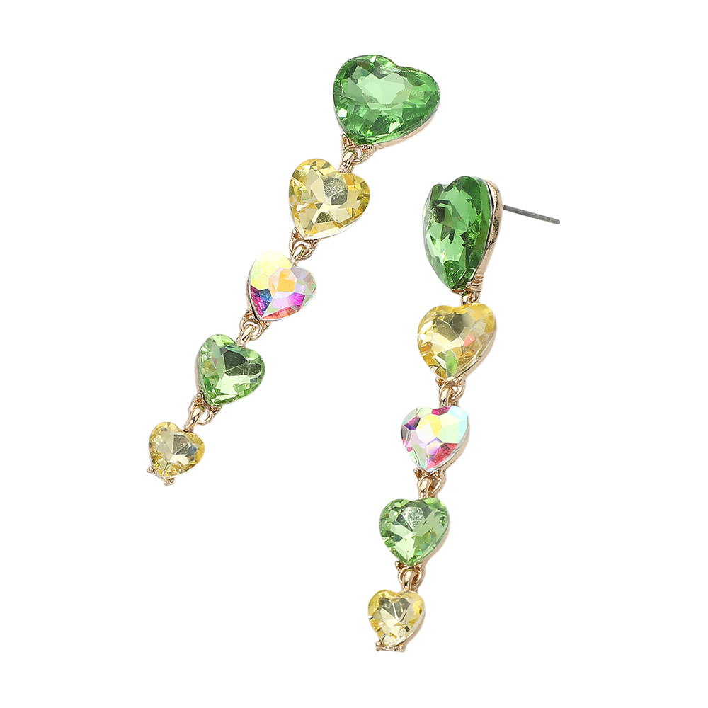 • Chic and playful long drop earrings adorned with heart-shaped multicolor gemstones. A vibrant accessory ideal for parties, gifting, or standout everyday style.