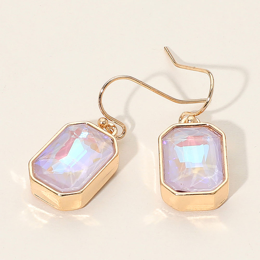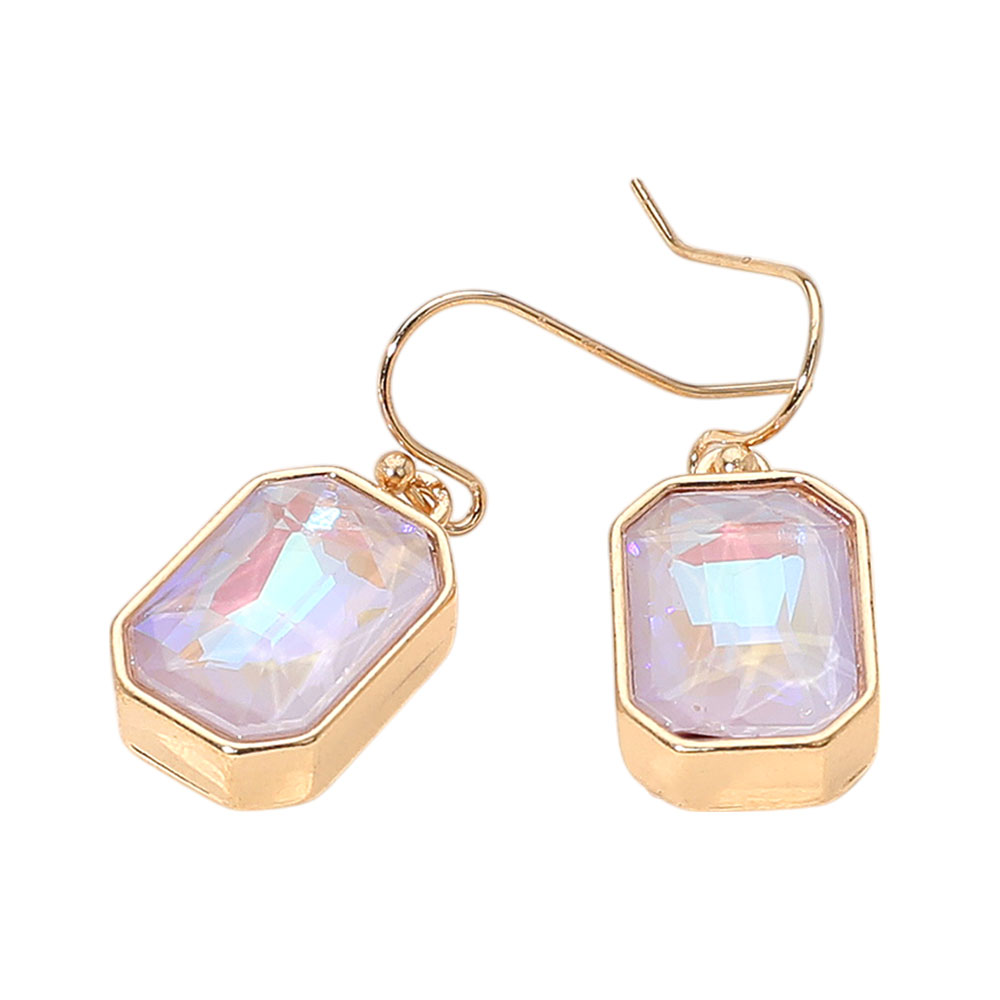Details • Size : 0.5" X 1.2" • Fish Hook Back • Add sparkle to your look with these faceted iridescent drop earrings. Featuring a sleek geometric design and eye-catching shine, they bring a glamorous touch to evening wear or everyday outfits. • Lead and Nickel Compliant