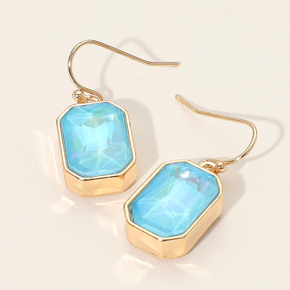 • Add sparkle to your look with these faceted iridescent drop earrings. Featuring a sleek geometric design and eye-catching shine, they bring a glamorous touch to evening wear or everyday outfits.