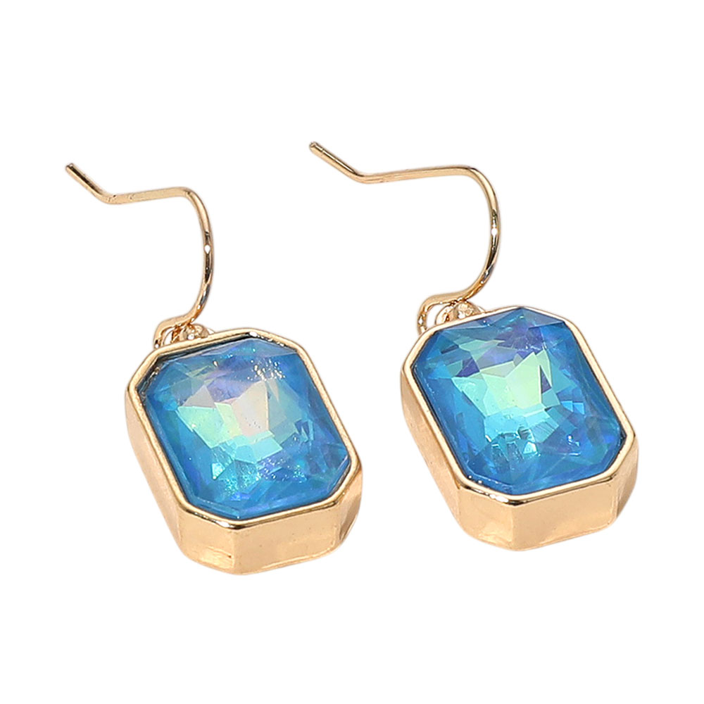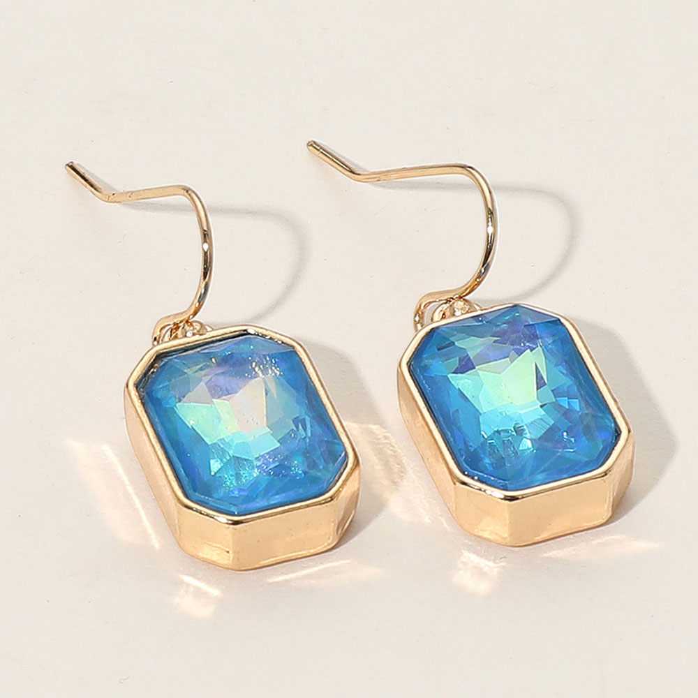 • Add sparkle to your look with these faceted iridescent drop earrings. Featuring a sleek geometric design and eye-catching shine, they bring a glamorous touch to evening wear or everyday outfits.