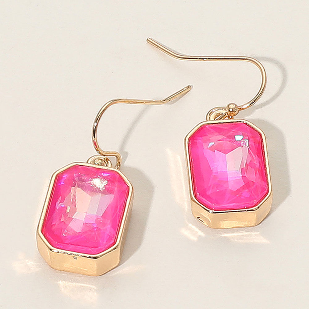 • Add sparkle to your look with these faceted iridescent drop earrings. Featuring a sleek geometric design and eye-catching shine, they bring a glamorous touch to evening wear or everyday outfits.