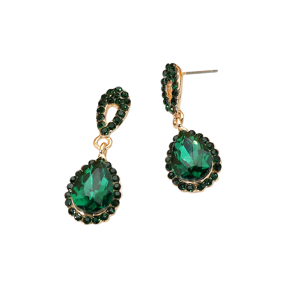 Faceted Teardrop Oval Rectangle Stone Cluster Link Dropdown Evening Earrings