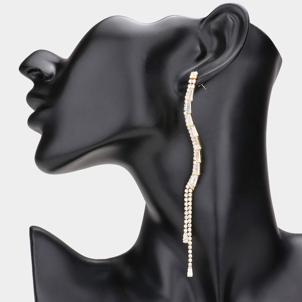 Long Dropped Tapered Baguette Rhinestone Evening Earrings