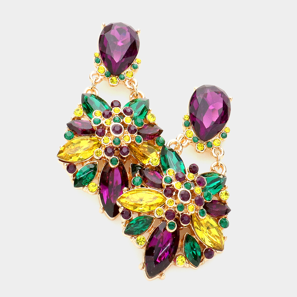 Mardi Gras Teardrop Marquise Stone Accented Dangle Evening Earrings