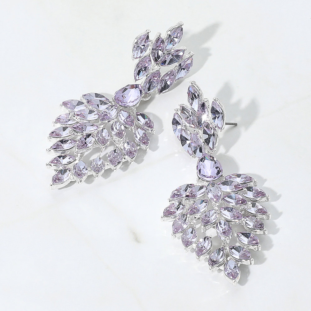 Metal Ball Rhinestone Open Heart Dangle Earrings