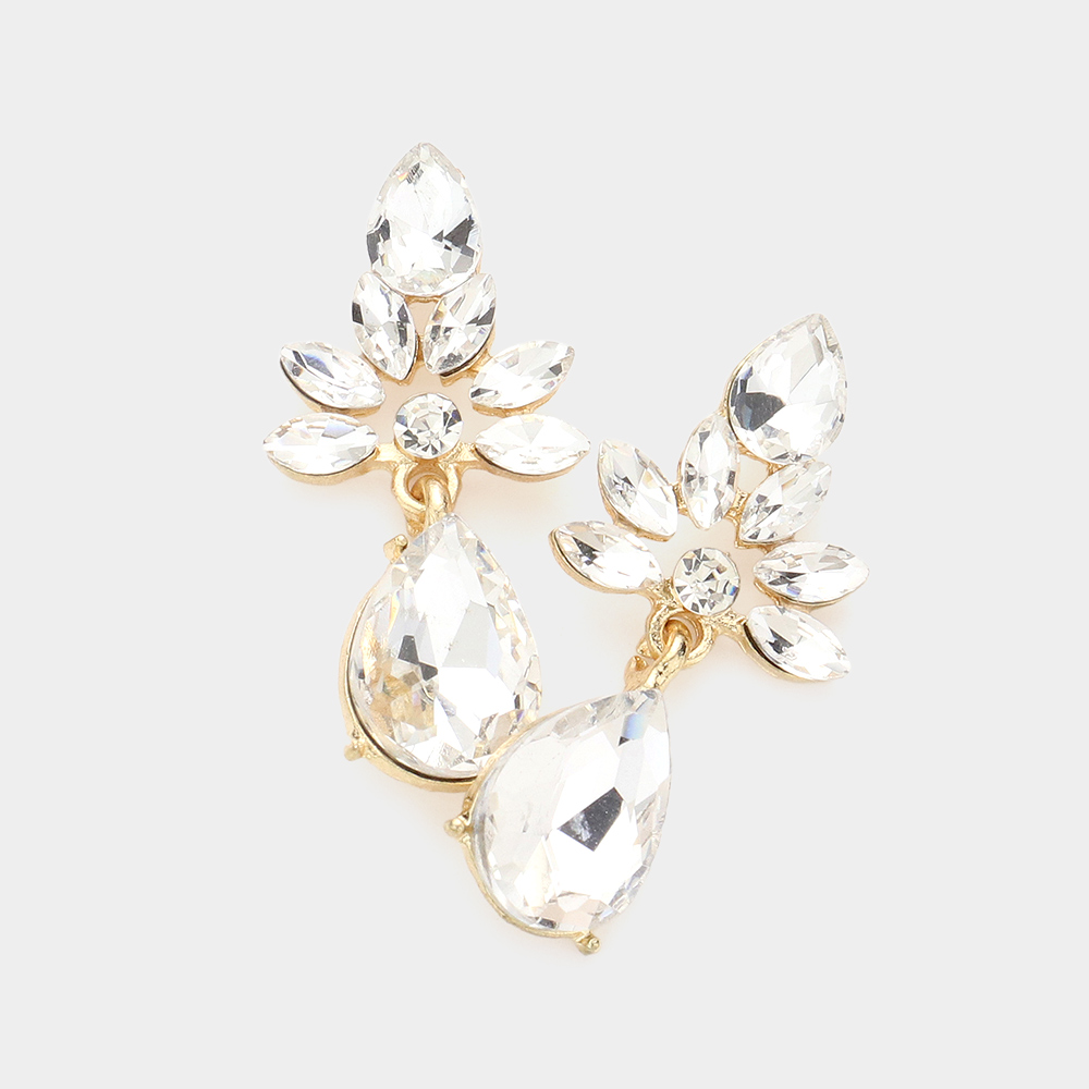 Marquise Cluster Teardrop Stone Dangle Evening Earrings