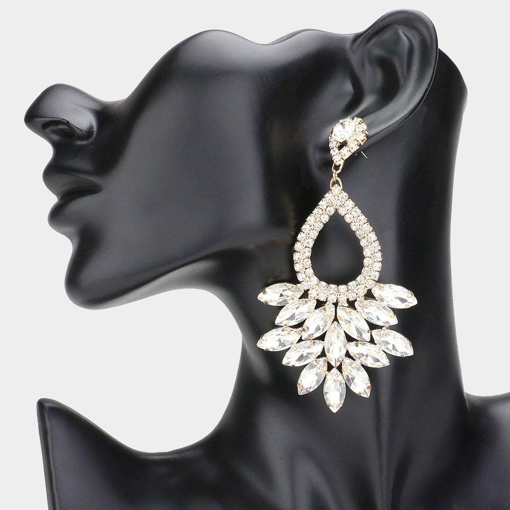 Marquise Crystal Cluster Rhinestone Evening Dangle Earrings