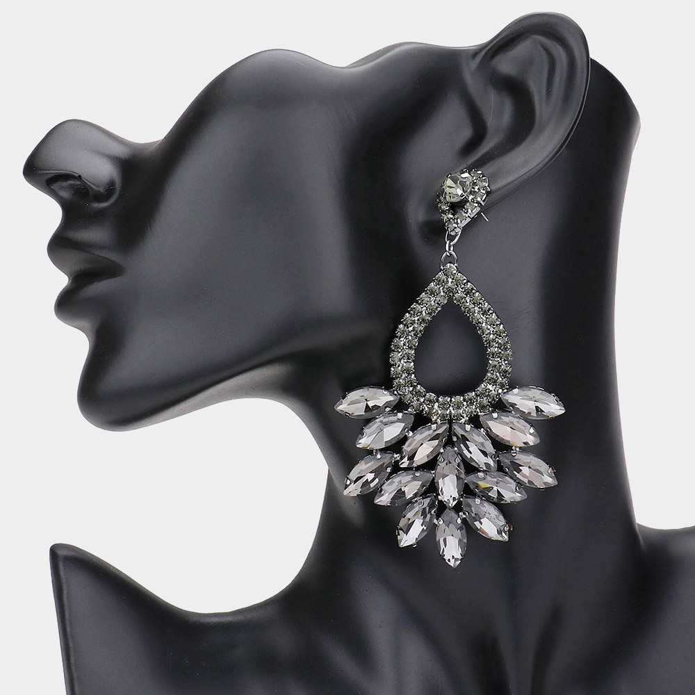 Teardrop Stone Cluster Pointed Chandelier Dangle Evening Earrings