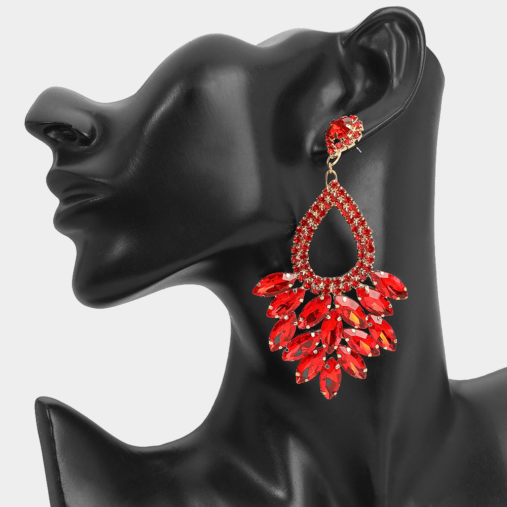 Marquise Crystal Cluster Rhinestone Evening Dangle Earrings