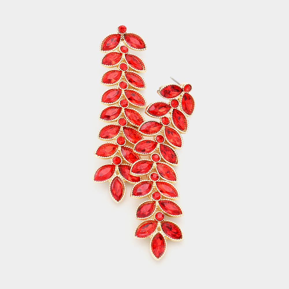 Marquise Crystal Leaf Vine Drop Evening Earrings
