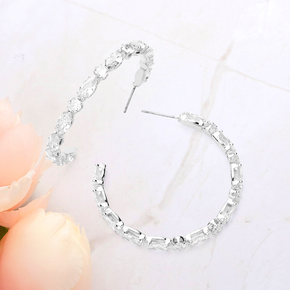 3Pairs - Silver Dipped Graduated Size Crystal Heart Stud Earring Set