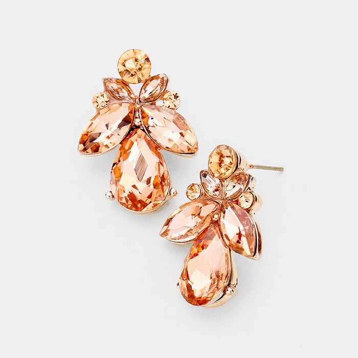 Rhinestone Paved Flower Accent Teardrop Dangle Evening Earrings