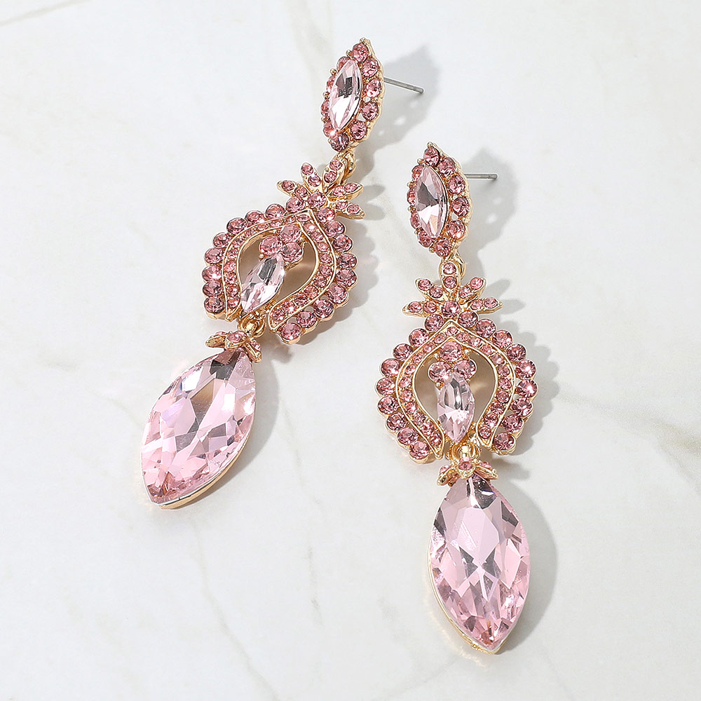 • Turn heads with these statement crystal dangle earrings designed with intricate detailing and a luxurious finish. Ideal for weddings, galas, or adding bold sparkle to any glamorous occasion or outfit.