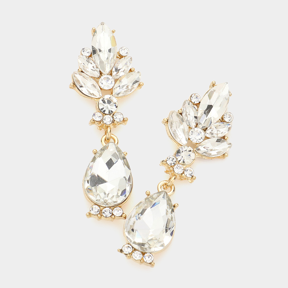 Marquise Glass Crystal Teardrop Dangle Evening Earrings
