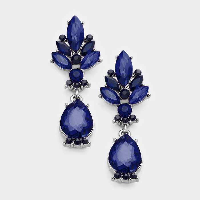 Marquise Glass Crystal Teardrop Dangle Evening Earrings