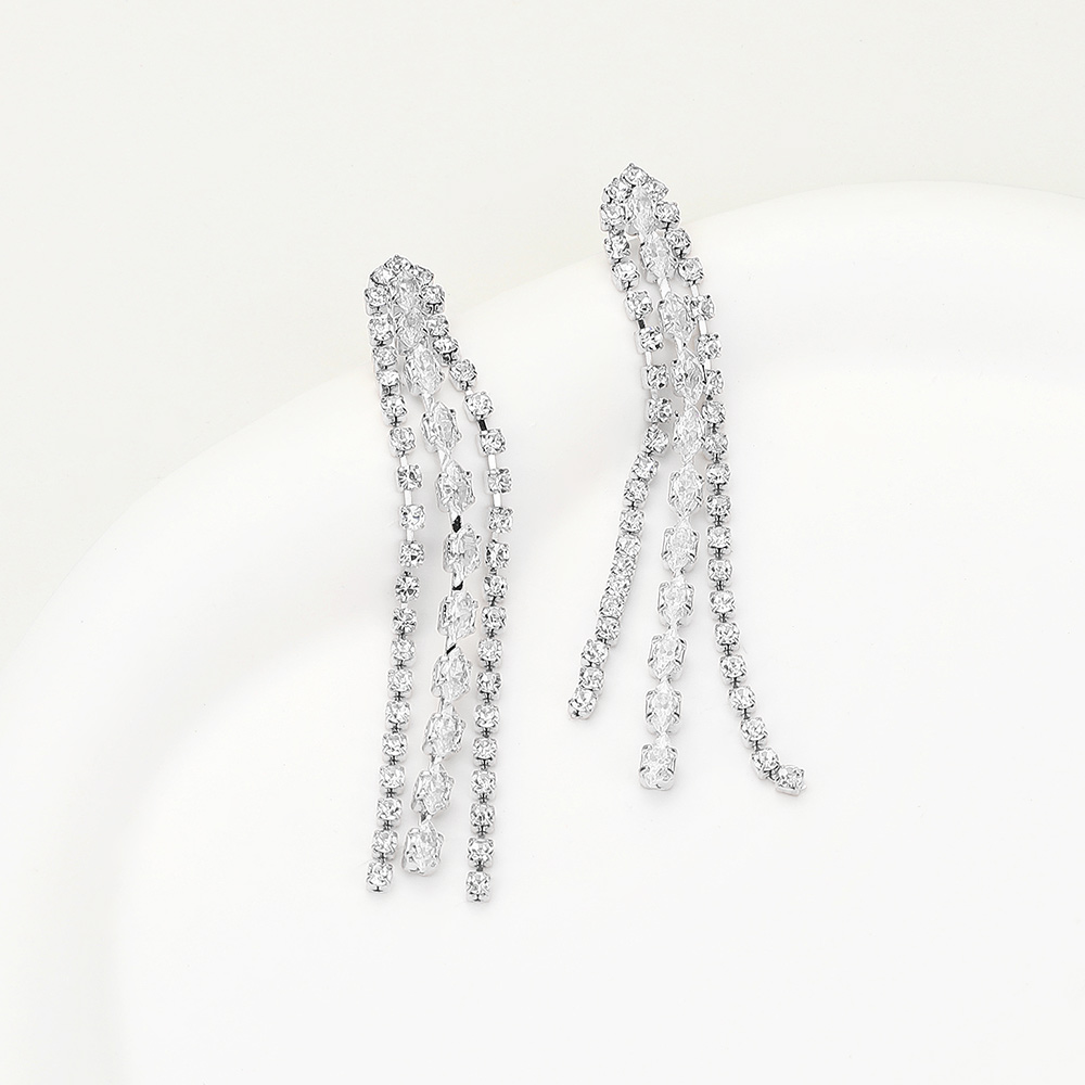 Marquise Round CZ Stone Fringe Dropdown Evening Earrings