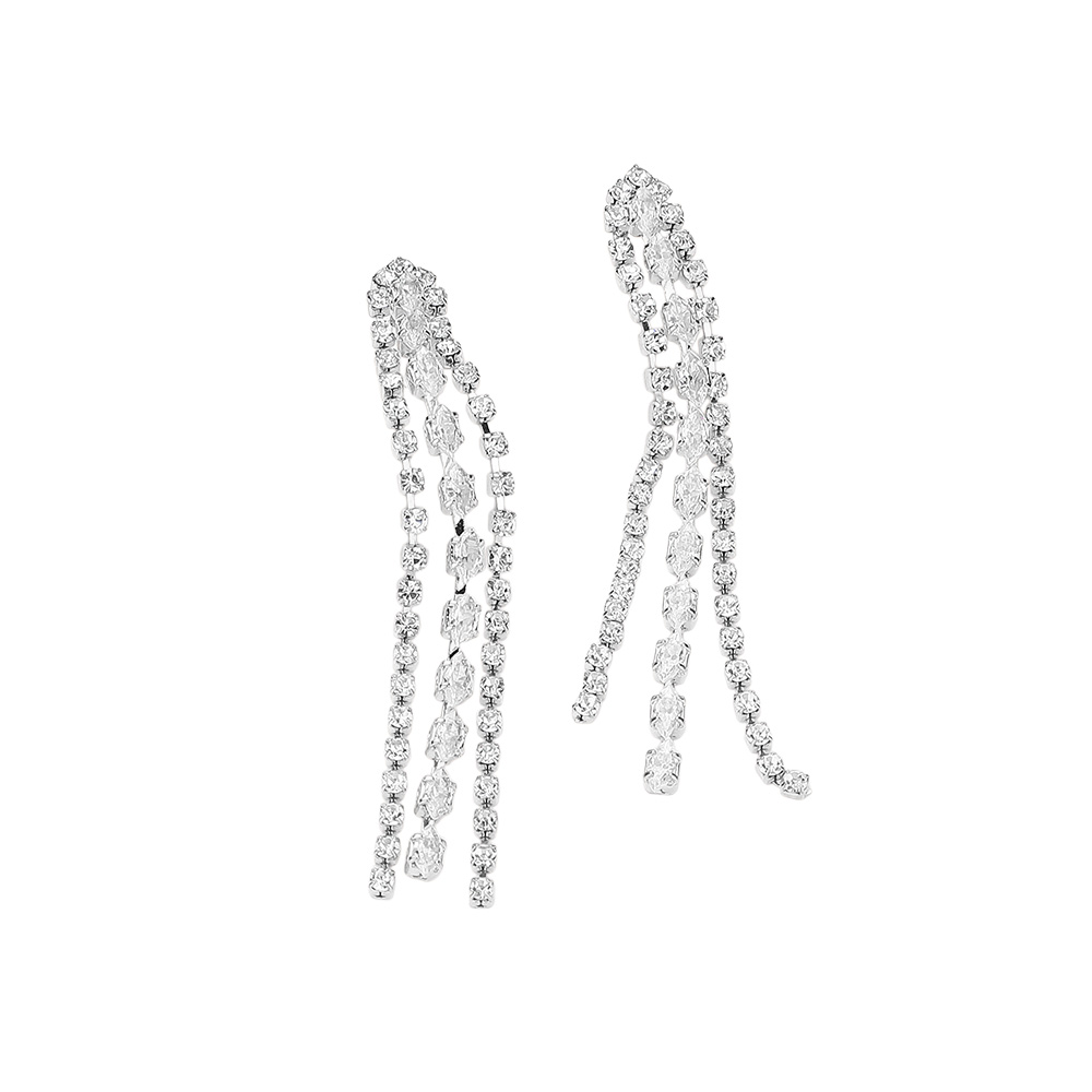 Emerald Cut Stone Accented Rhinestone Fringe Dangle Evening Earrings
