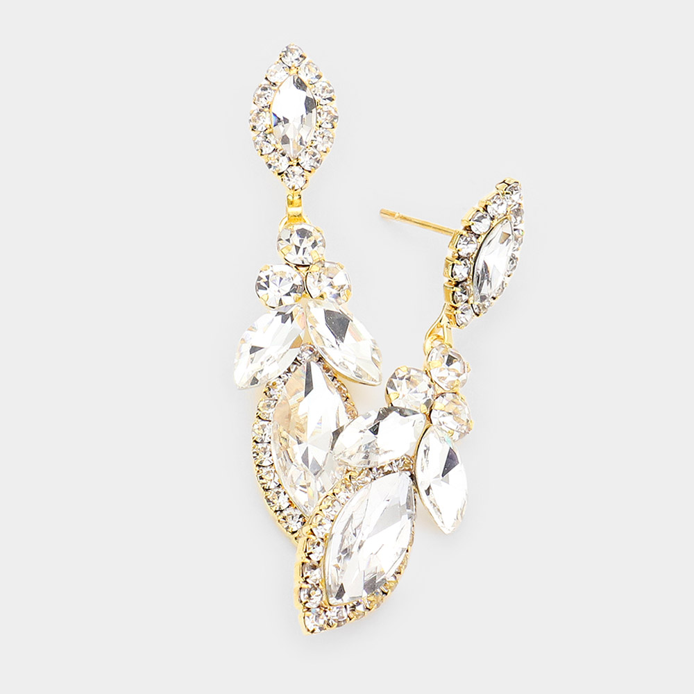 Gold Dipped Stone Paved Quatrefoil Charm Pointed Paperclip Chain Bracelet