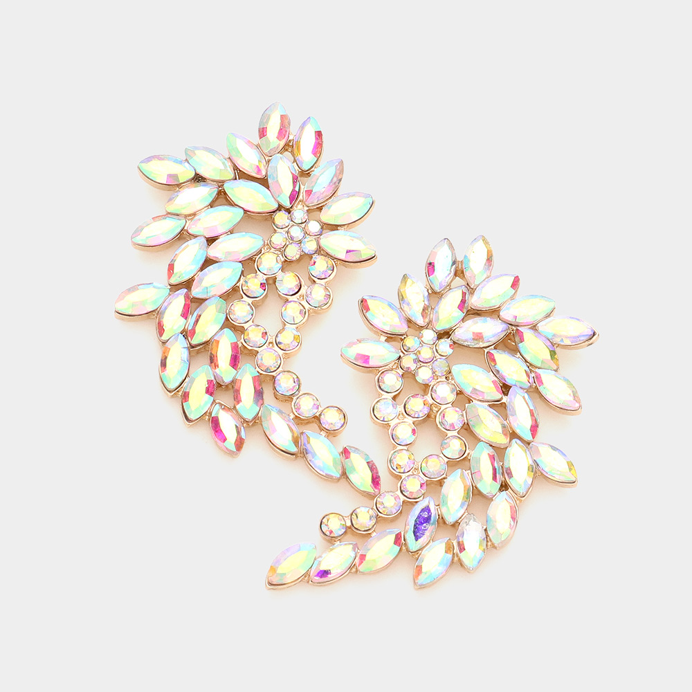 Marquise Round Stone Cluster Angel Wing Evening Earrings