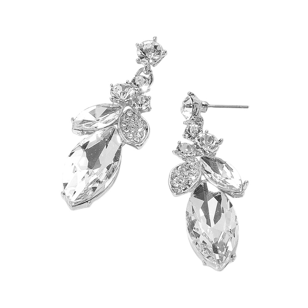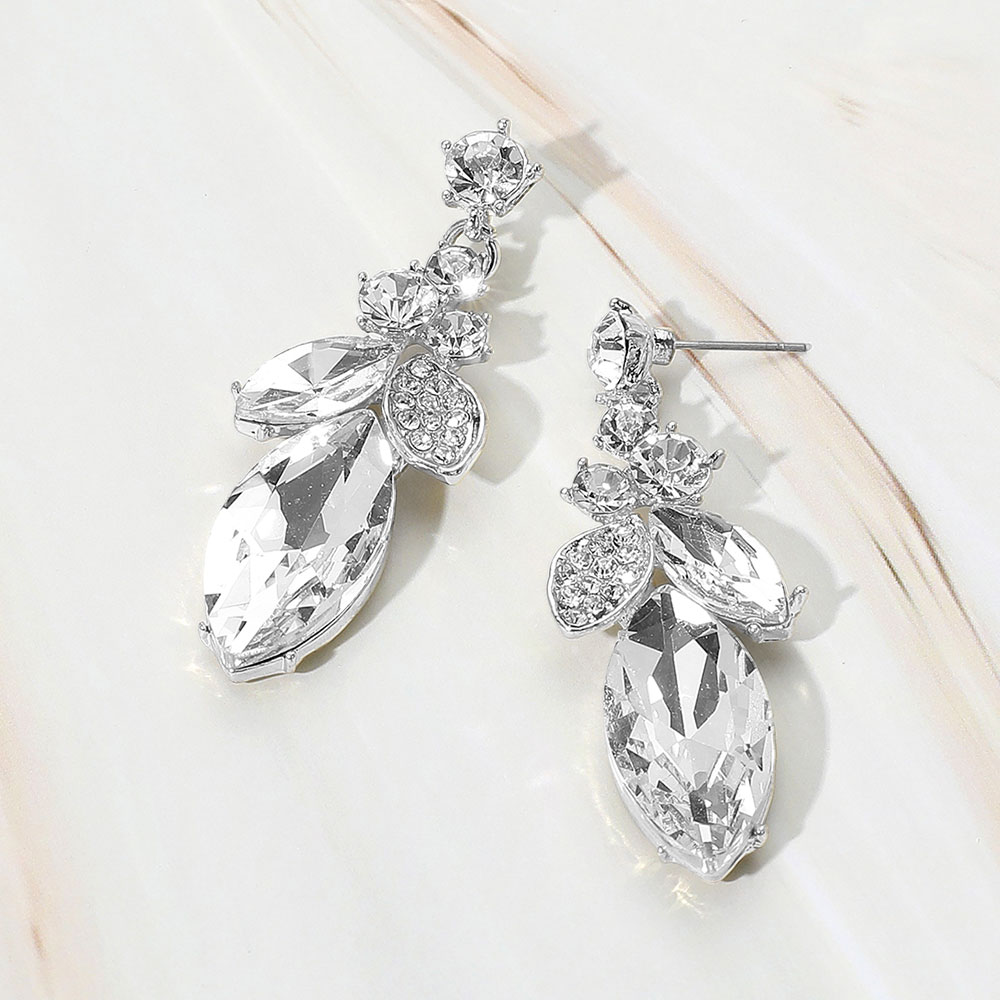 Marquise Stone Cluster Embellished Link Dropdown Evening Earrings