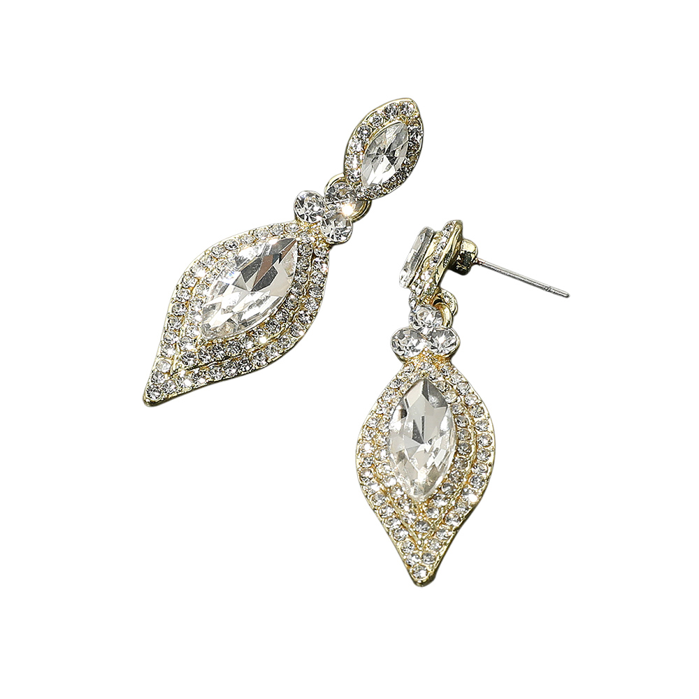 Rhinestone Crystal Pave Rhombus Evening Earrings