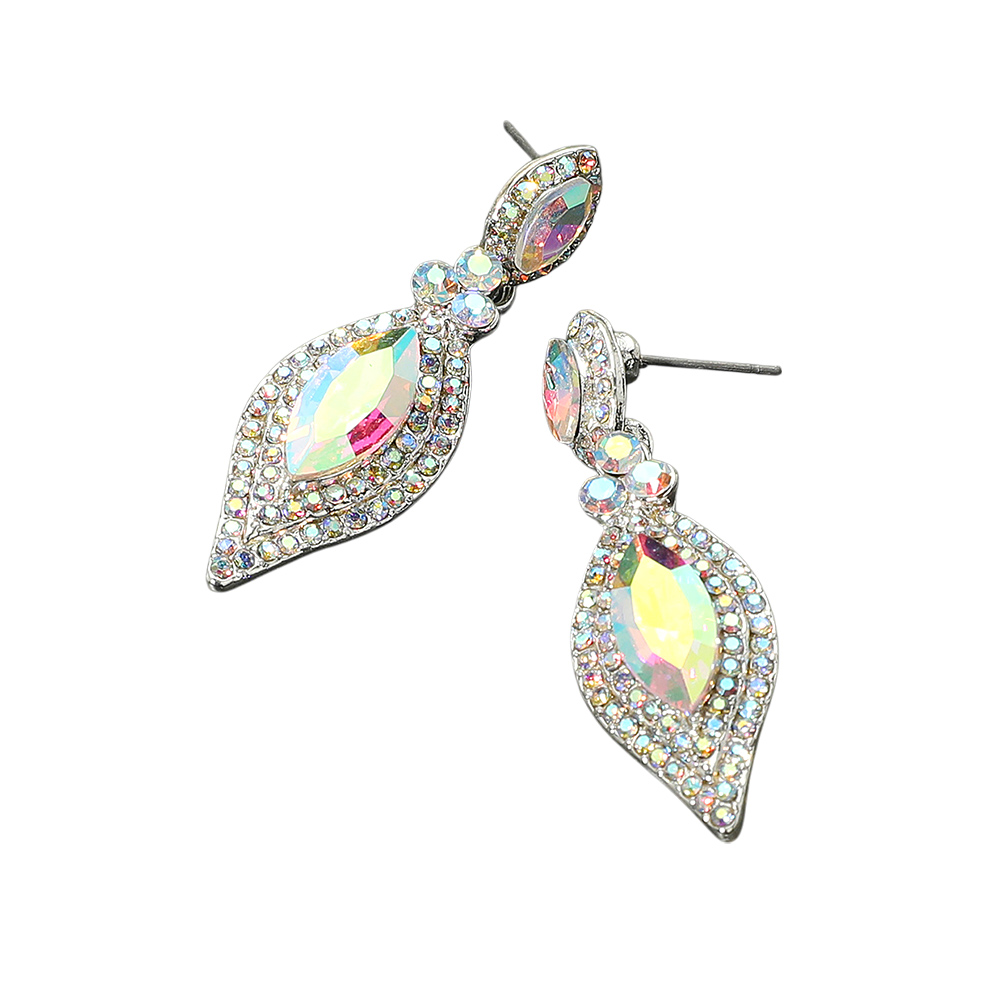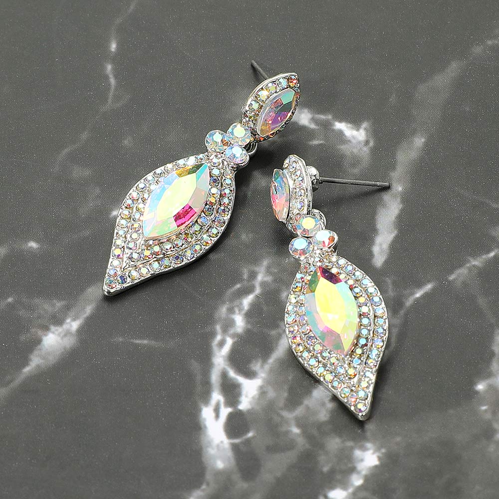 Rhinestone Embellished Teardrop Stone Lever Back Evening Earrings