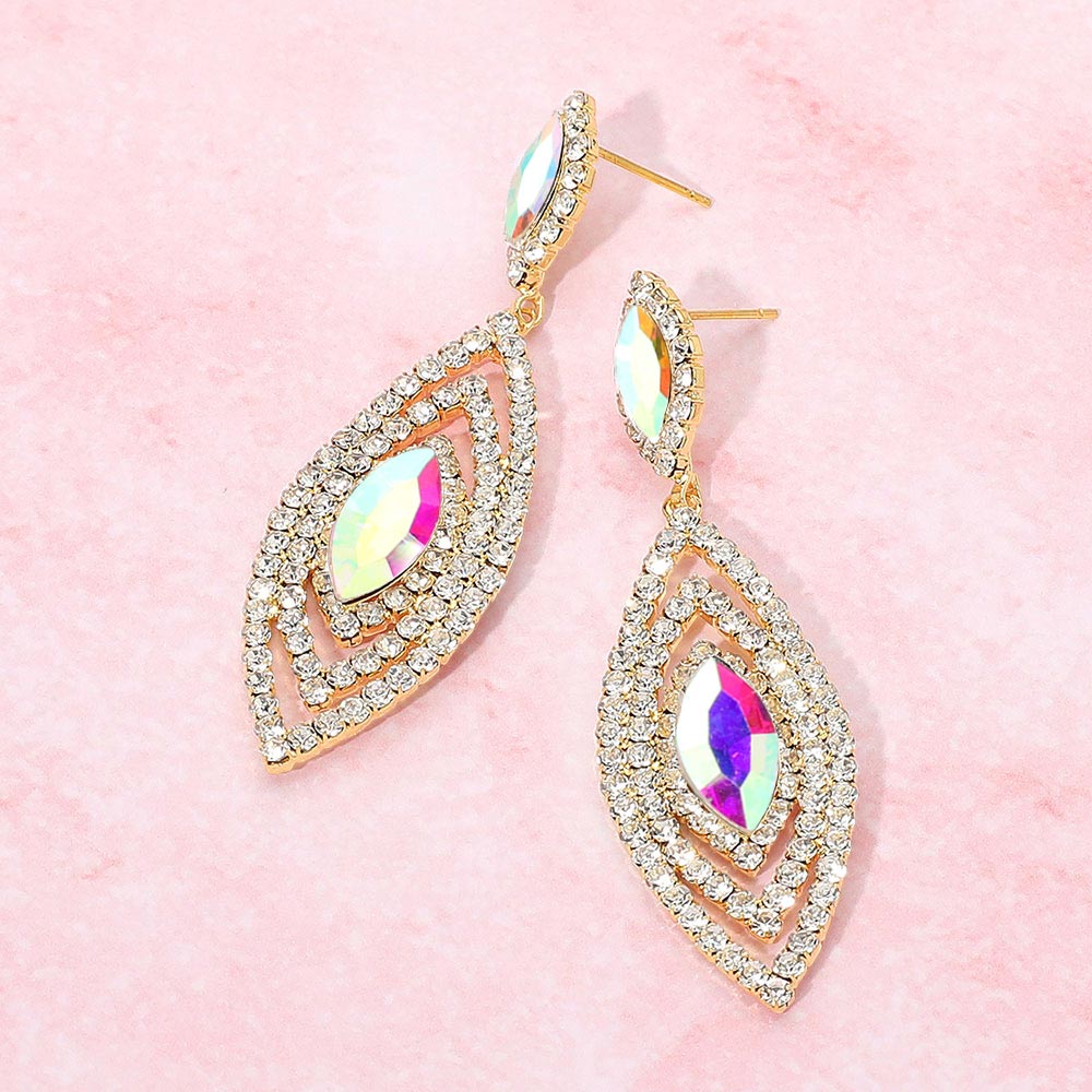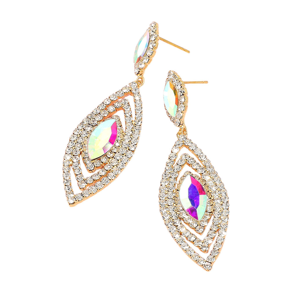 • Elegant drop earrings featuring a layered marquise-shaped design with dazzling crystal accents, perfect for adding glamour to any evening or special occasion look.