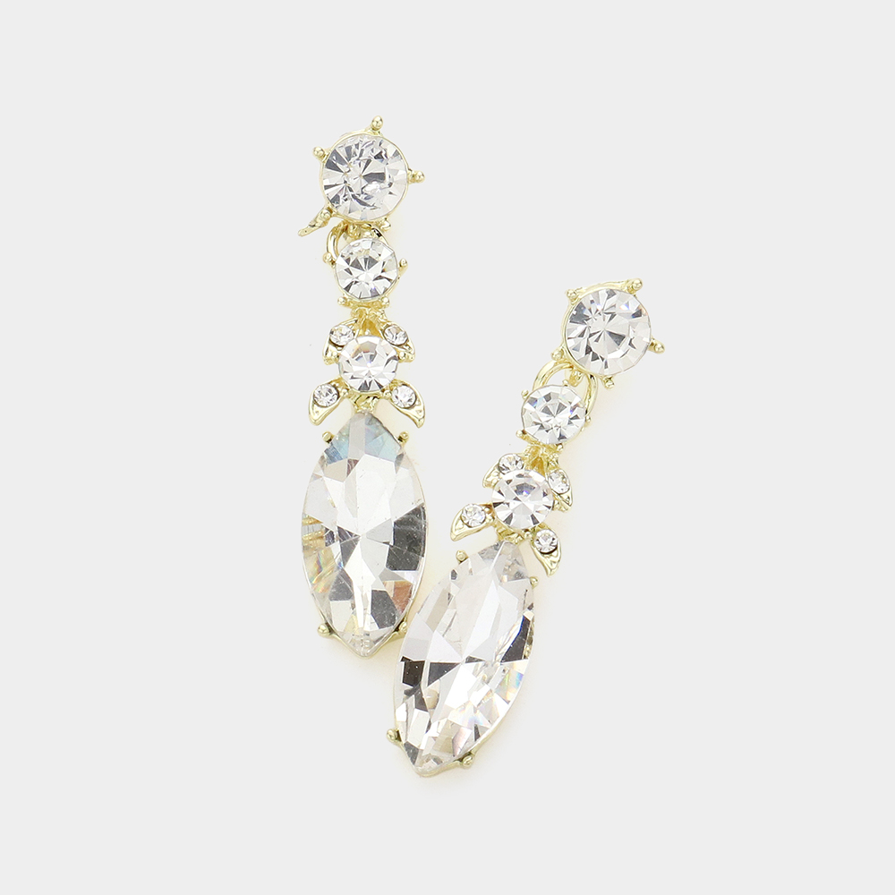 Triple Flower Stone Cluster Link Teardrop Pointed Evening Earrings