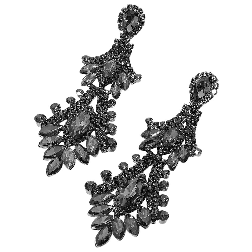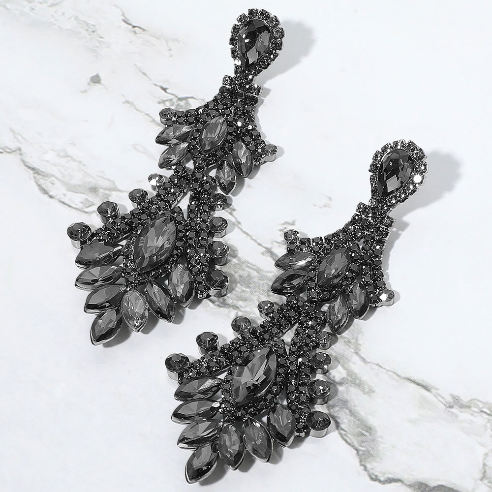 Elegant Floral Stone Cluster Drop Evening Earrings