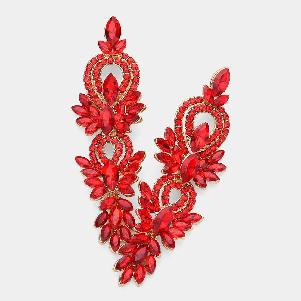 Marquise Stone Cluster Embellished Rhinestone Paved Open Chandelier Dangle Evening Earrings