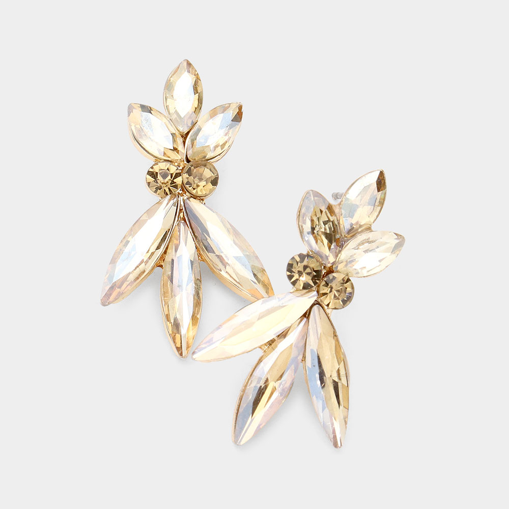 Floral Stone Cluster Drop Dangle Evening Earrings