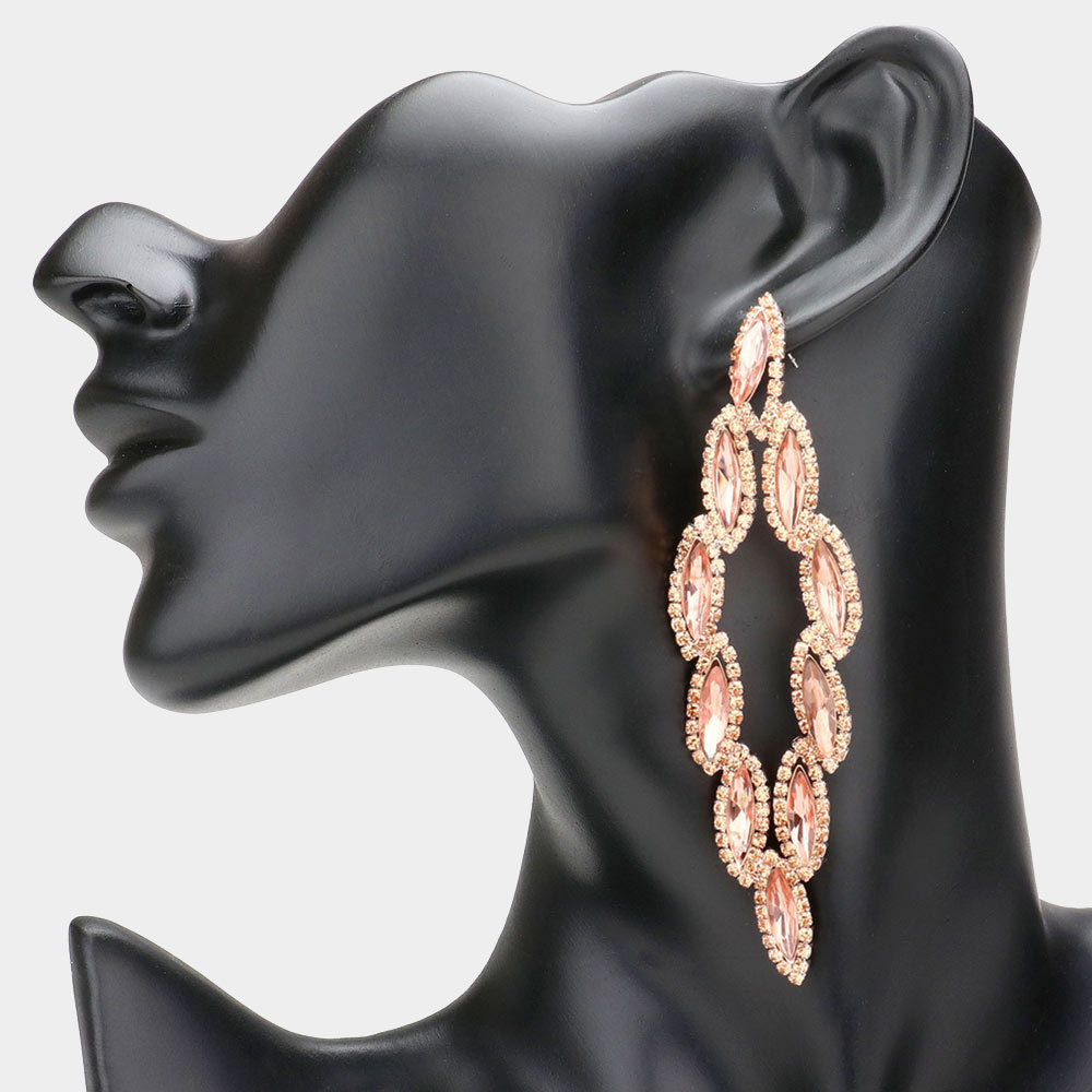Teardrop Marquise Stone Cluster Embellished Dropdown Evening Earrings