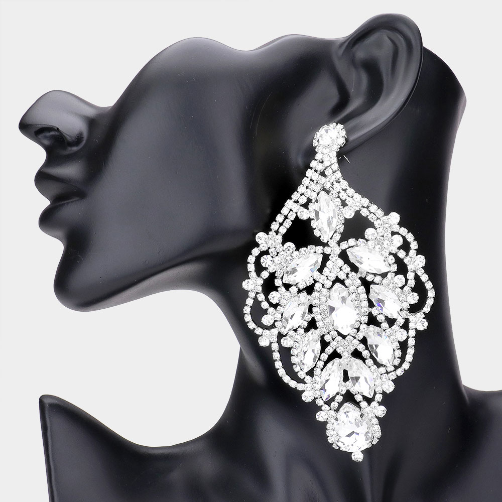 Marquise Stone Accented Statement Evening Earrings