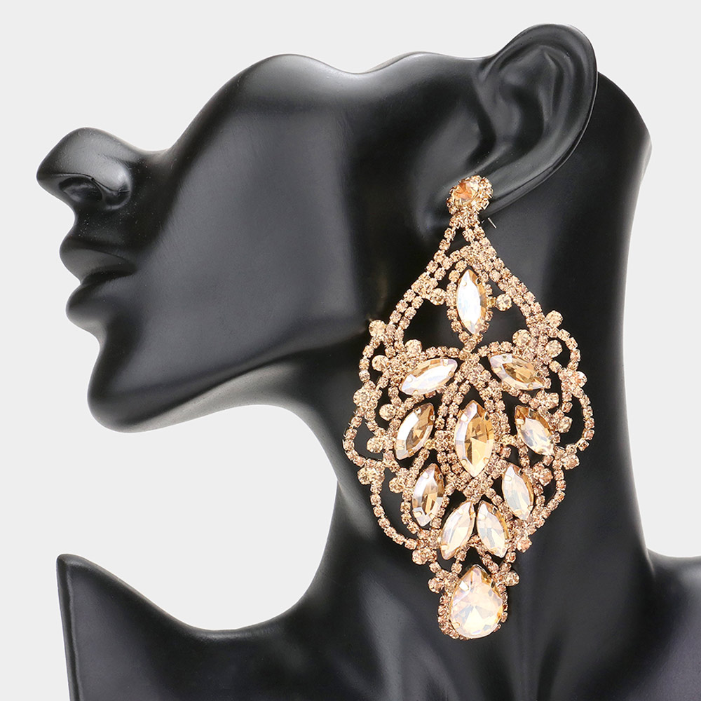 Teardrop Stone Cluster Vine Dropdown Evening Earrings