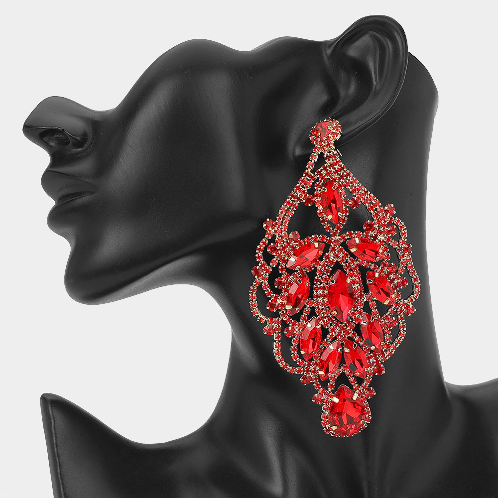 Teardrop Glass Stone Cluster Trip Open Rhombus Dangle Evening Earrings