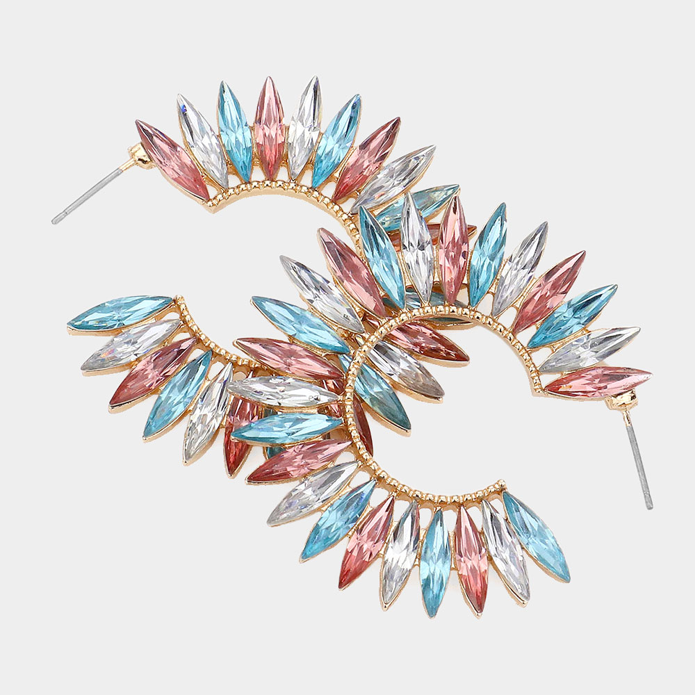 SECERT BOX_Stainless Steel Starburst Sun Charm Dangle Huggie Hoop Earrings