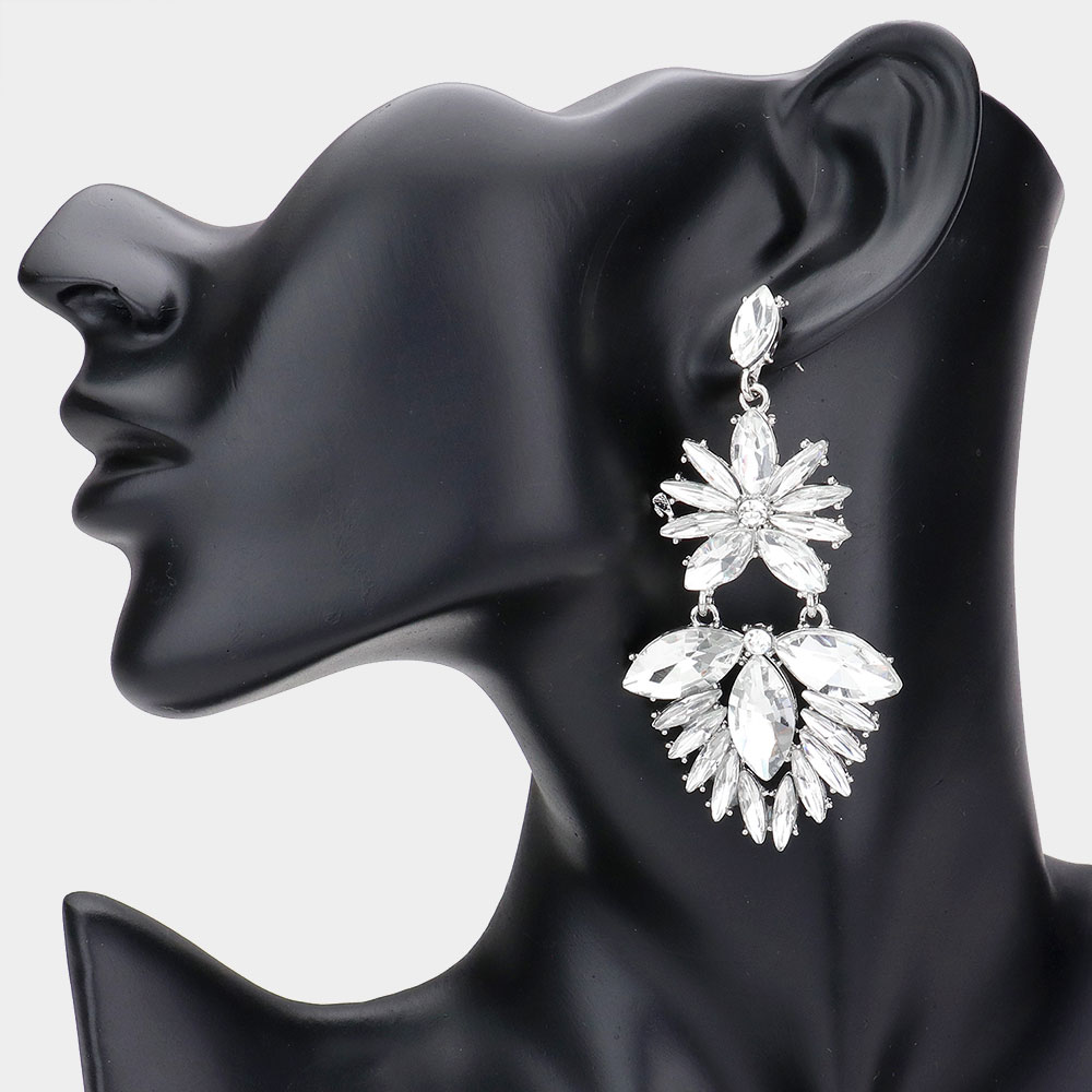 Marquise Stone Cluster Chandelier Dangle Evening Earrings
