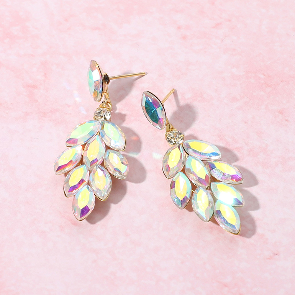 Rectangular Glass Stone Cluster Dangle Evening Earrings