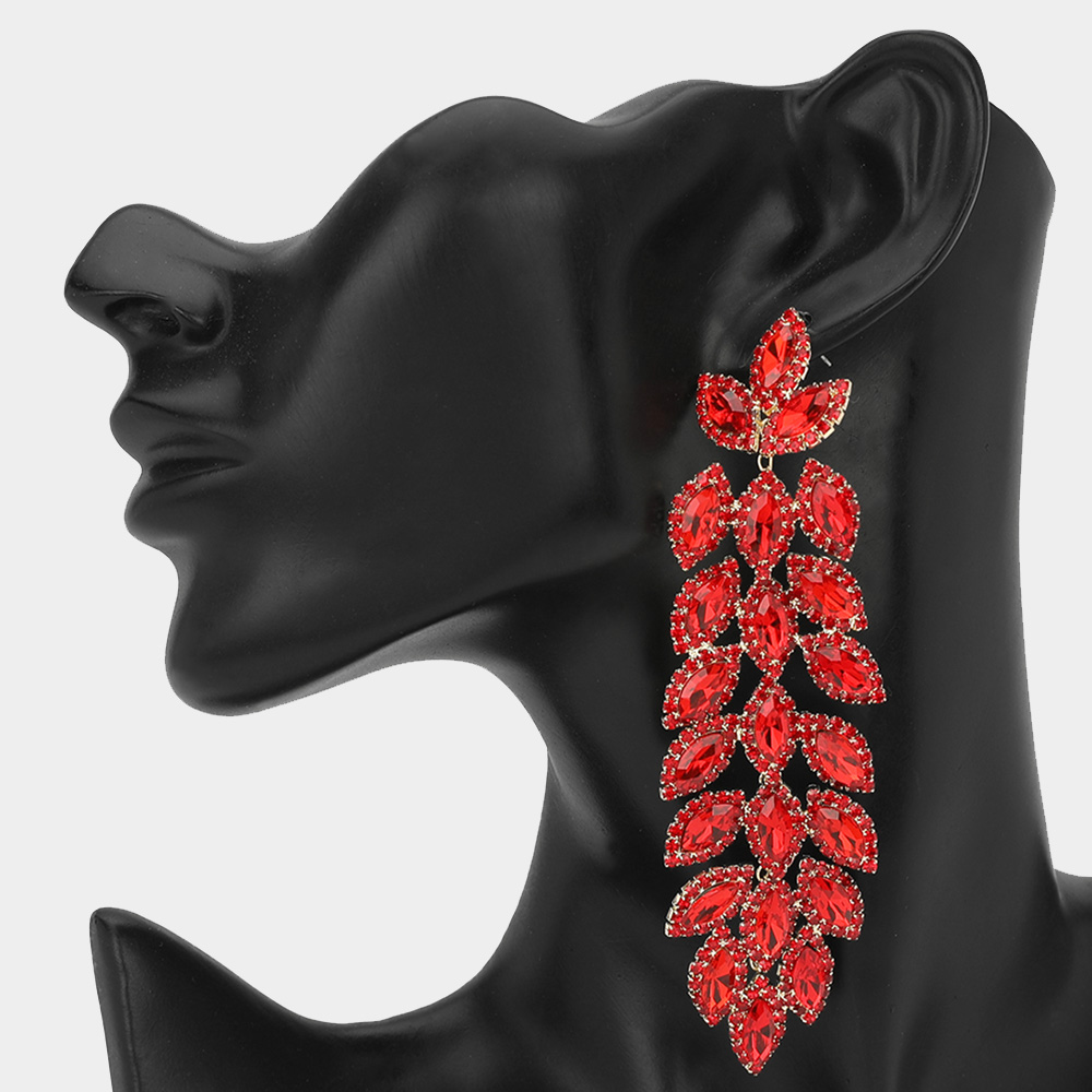 • Dramatic marquise crystal statement earrings with cascading leaf design. Perfect for weddings, formals, or upscale events. Lightweight yet bold, these earrings add instant glamour. A must-have for boutique collections seeking high-impact accessories that sparkle.