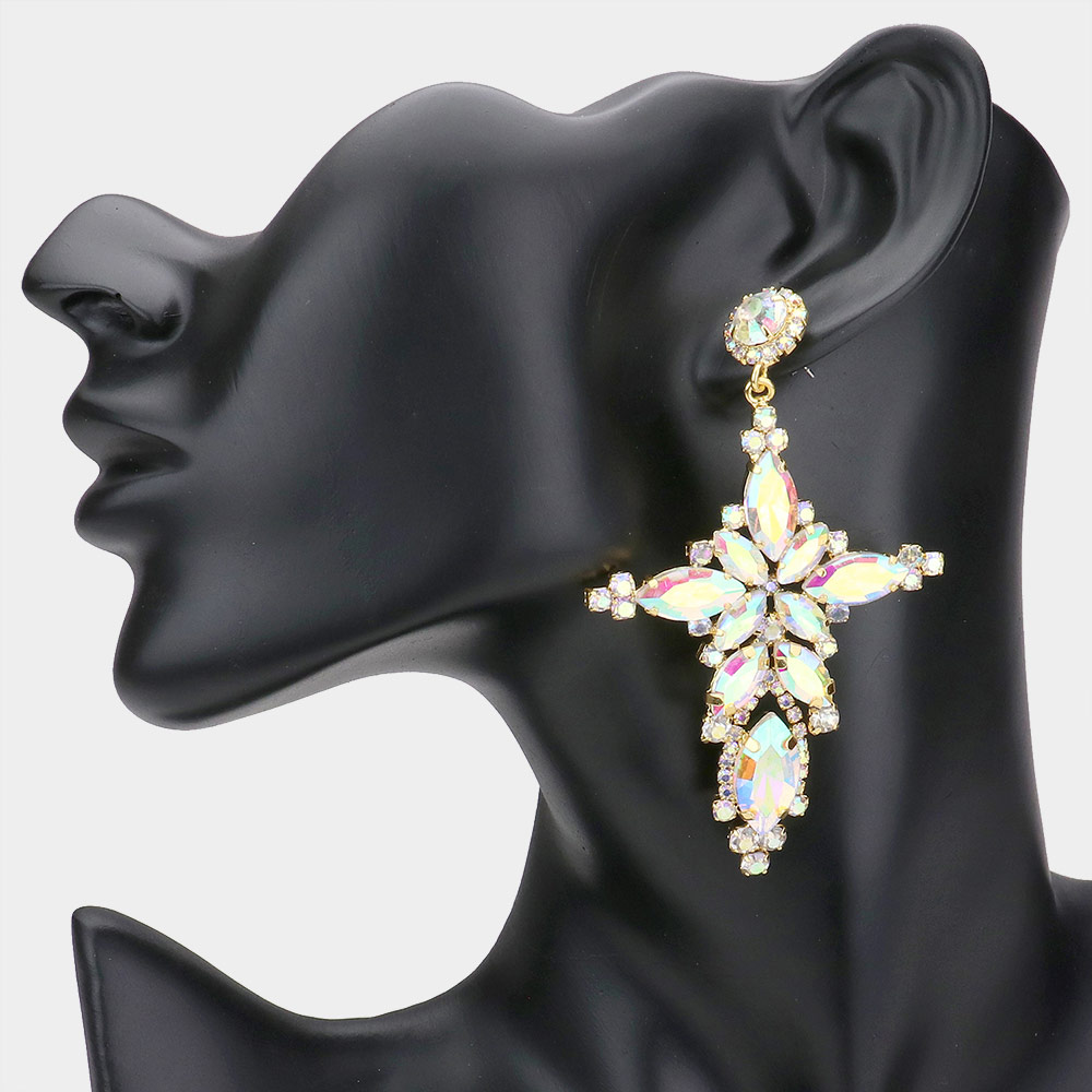 Marquise Stone Cluster Cross Dangle Evening Earrings