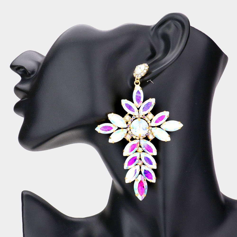 Flower Mqrauise Stone Cluster Pointed Cross Dangle Evening Earrings