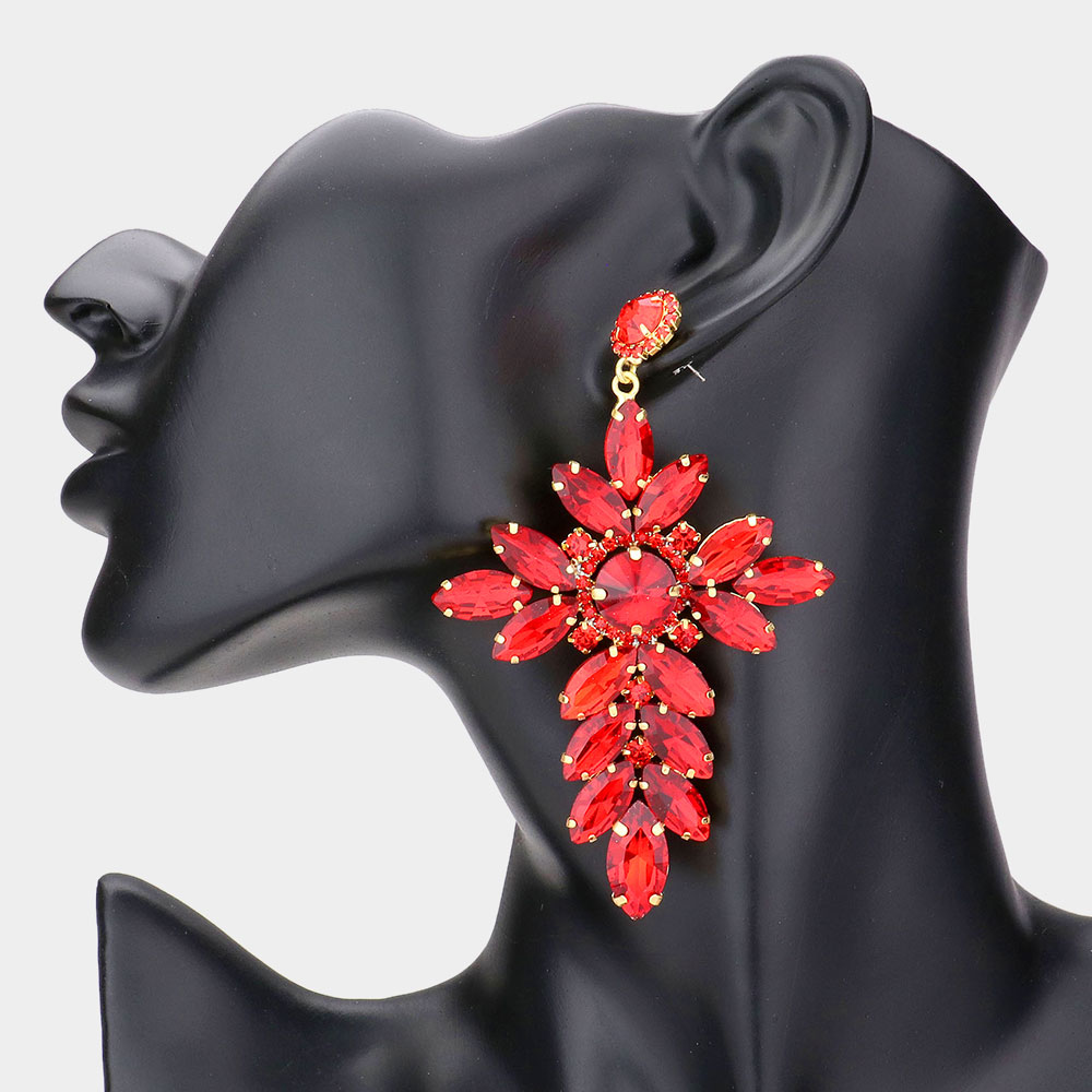 Marquise Stone Cluster Cross Dangle Evening Earrings
