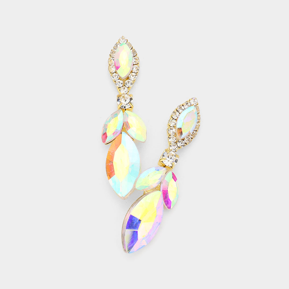 Flower Teardrop Stone Cluster Dangle Evening Earrings
