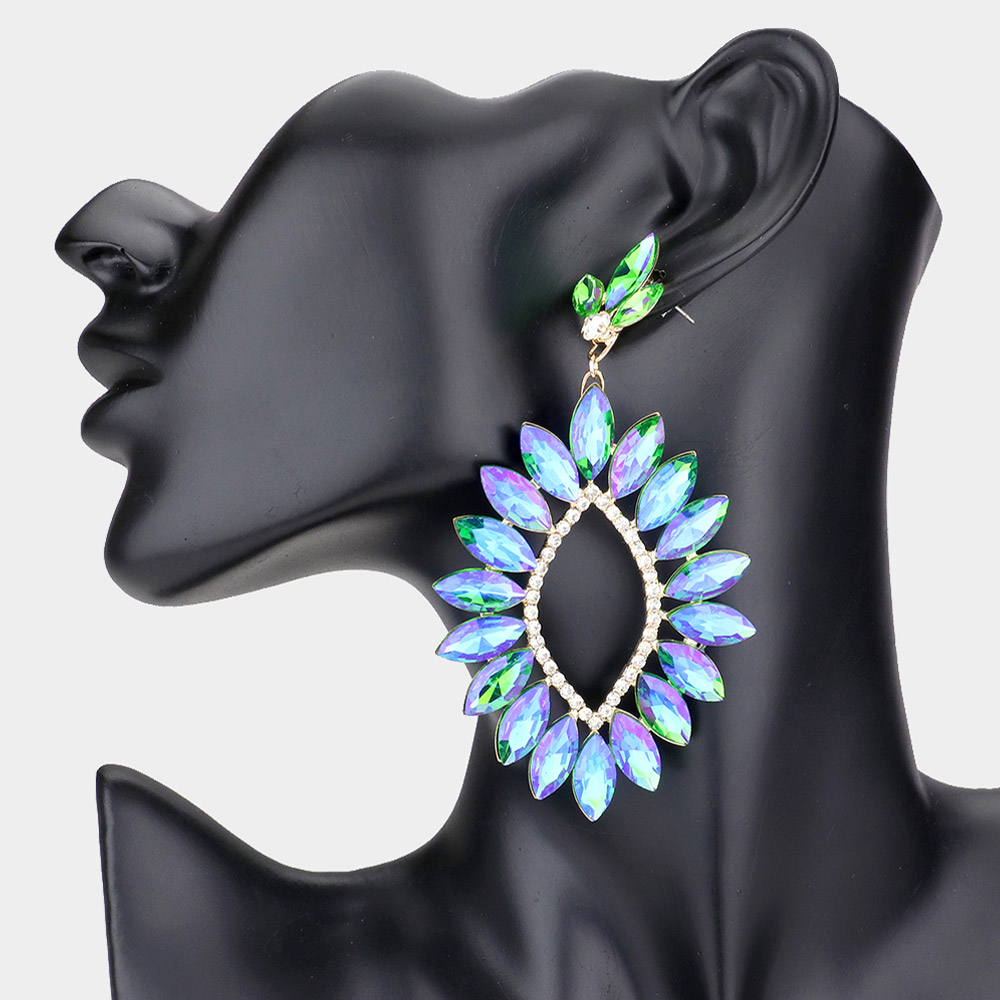 Oversized Marquise Triple Flower Chandelier Evening Earring