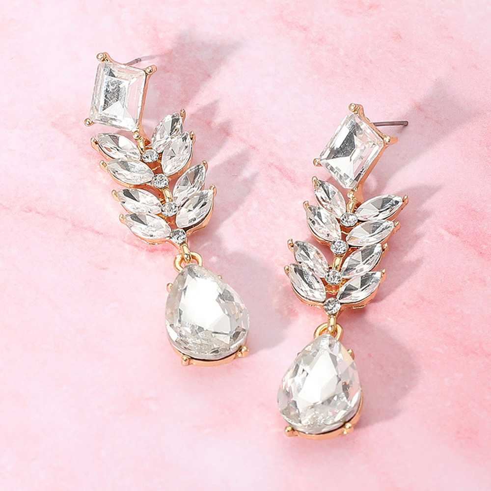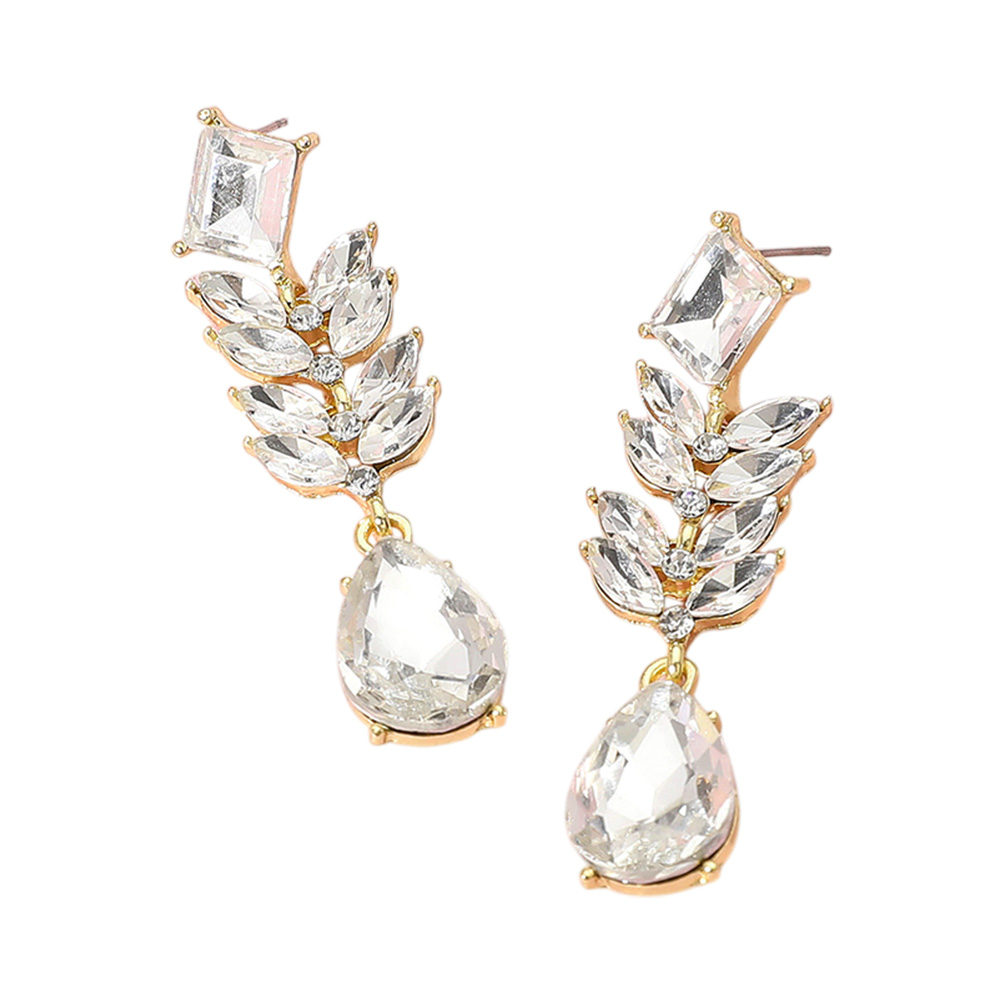 Marquise Stone Cluster Drop Teardrop Dangle Evening Earrings